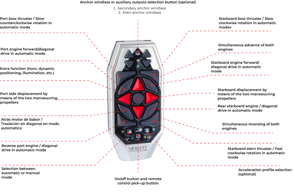 - Extra function button (horn, lights or DPS dynamic positioning system).